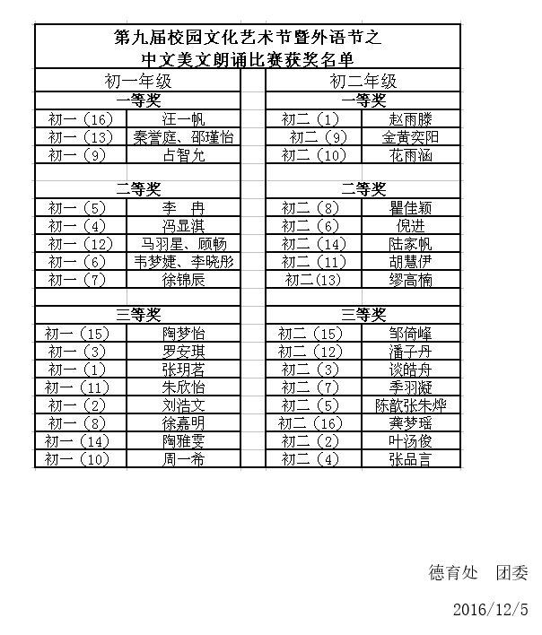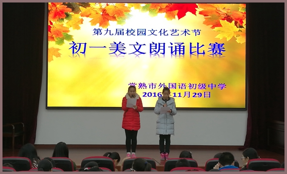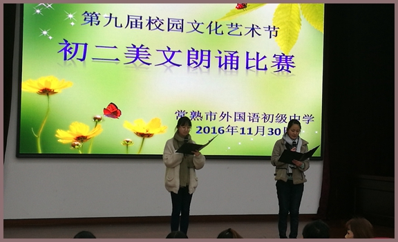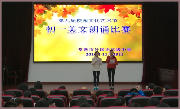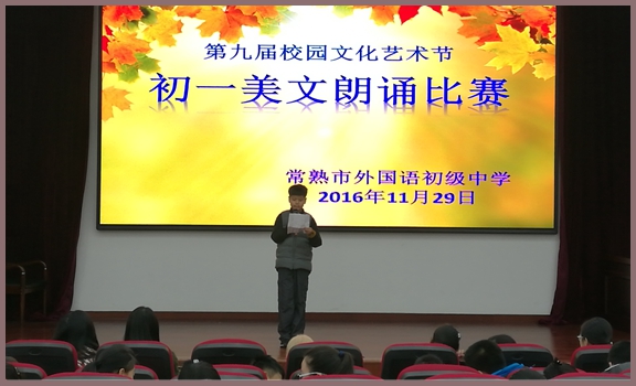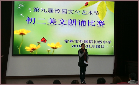 为了营造文明高雅的校园读书氛围,丰富校园文化生活,提高学生的朗诵水平,培养学生对优秀文学作品的学习兴趣。2016年11月29日和30日中午,第九届校园文化艺术节暨外语节系列活动之中文美文朗诵比赛在报告厅隆重举行。