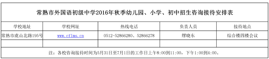 常熟市外国语初级中学2016年秋季幼儿园、小学、初中招生咨询接待安排表